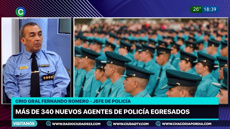 El jefe de la Policía del Chaco, Fernando Romero, de visita en los estudios de CIUDAD TV destacó el ingreso de más de 300 nuevos agentes a la fuerza, habló del trabajo prioritario en todo el territorio y de los objetivos trazados a corto plazo para mejorar el servicio.