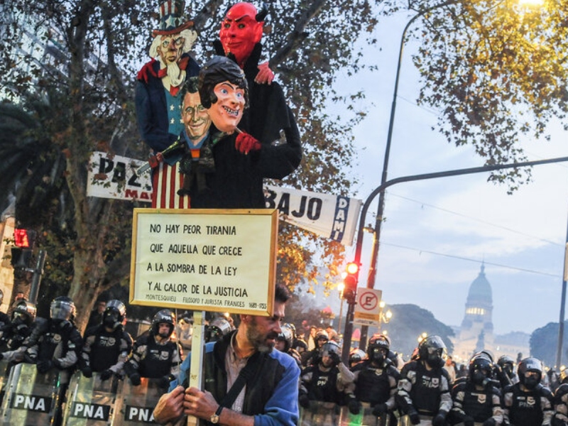 “El gobierno está avanzando rápidamente en el intento de neutralizar opositores políticos mediante la criminalización”, dice Guadalupe Godoy, abogada de la Liga Argentina por los Derechos Humanos (LADH). “Estaba claramente planificado: la semana pasada el Ministerio de Seguridad modificó una resolución para que el Poder Ejecutivo pueda calificar como terrorista a quien quiera. Después publicaron un tuit hablando de golpismo y terrorismo y, a las pocas horas, consiguieron un fiscal adepto que materializa esas intenciones en la justicia. Es gravísimo el uso del terror o del miedo al señalamiento del Estado como herramienta política. Están construyendo una institucionalidad paralela a la del Estado de derecho”.