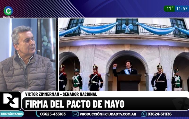 El senador radical chaqueño, Víctor Zimmermann, visitó los estudios de CIUDAD TV previo a la firma del Pacto de Mayo y en la jornada en la que el Ejecutivo nacional reglamentó la Ley bases y el paquete fiscal que acompañó con su voto en la Cámara alta. "Voy a concurrir, recibí la invitación del Presidente de la Nación. Considero que es una convocatoria de carácter institucional, por lo tanto, creo que hay que estar", aseguró.