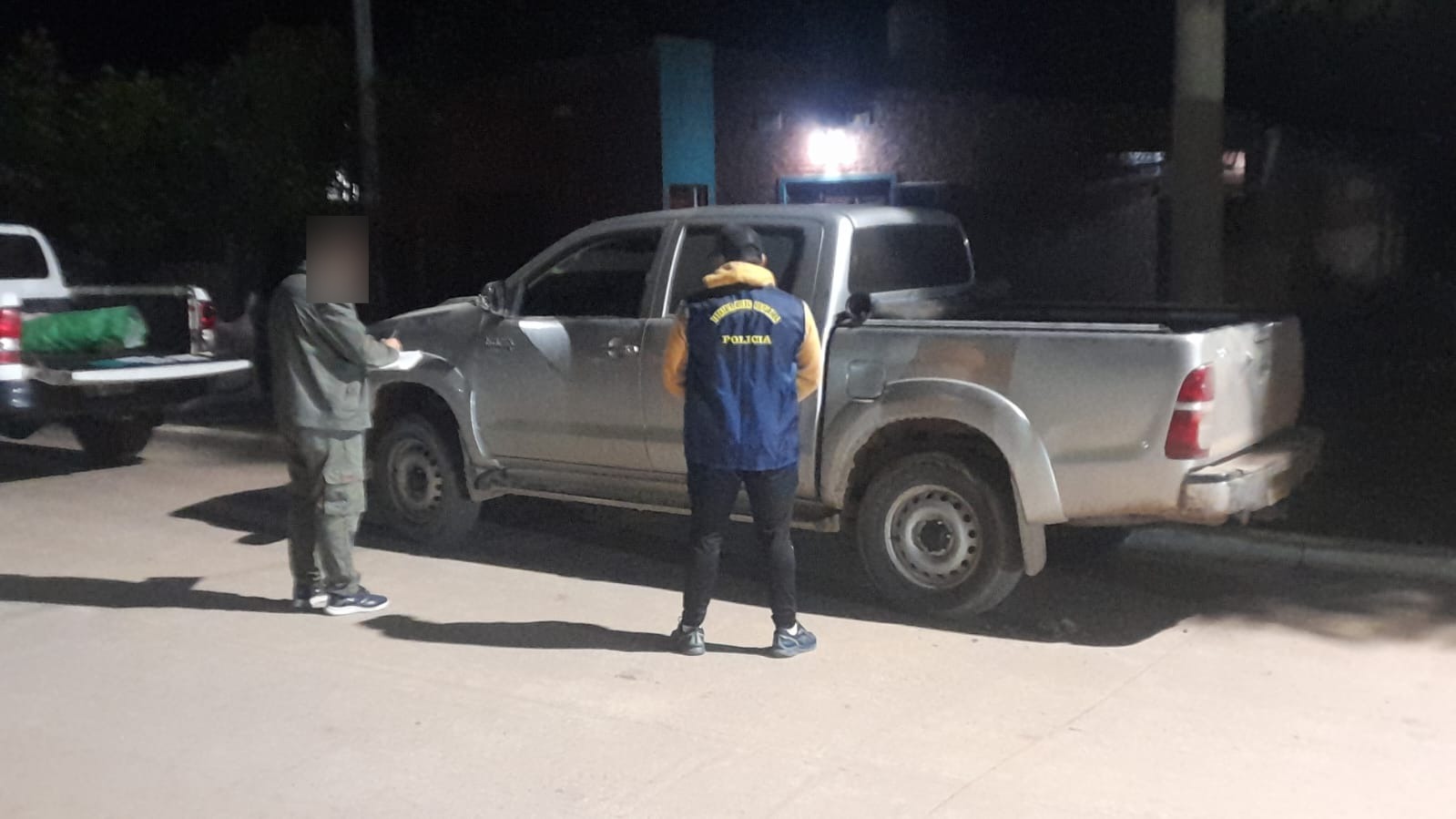 En la noche del jueves, los efectivos del Departamento Estrategias y Técnicas Investigativas Interior en conjunto con el personal de la División Investigaciones Complejas Interior General San Martín, llevaron a cabo diferentes recorridas preventivas por la localidad de Pampa del Indio, donde demoraron el paso de una camioneta tipo Pick-up, Toyota Hilux, conducida por un hombre de 40 años, quien tomo conocimiento del procedimiento policial.