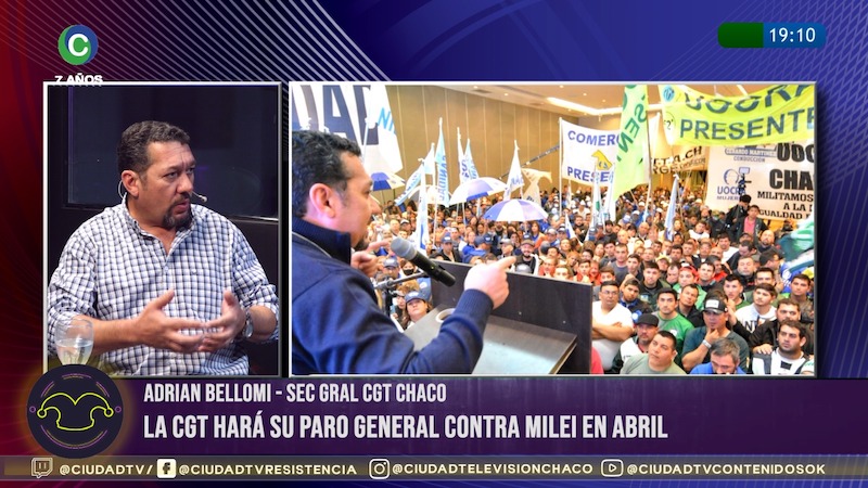 Adrian Bellomi, secretario General de la CGT Chaco, de visita en los estudios de CIUDAD TV, habló de la actualidad gremial, el escenario electoral de cara a mayo en la provincia y destacó la convocatoria a un paro general de la central obrera. Sostuvo que más allá de la fecha de la convocatoria, que aún resta definir, “lo importante es que la CGT ha decidido llevar a cabo una medida de acción directa en toda la Argentina".