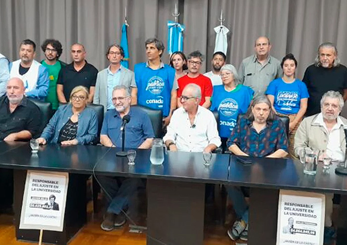 Los referentes del sector confirmaron la medida en una conferencia de prensa en la sede de la CGT de la calle Azopardo, donde estuvieron respaldando la medida de fuerza del sector los cosecretarios generales Héctor Daer y Pablo Moyano, y los titulares de la CTA de los Trabajadores, Hugo Yasky, y de la CTA Autónoma, Hugo “Cachorro” Godoy. Por esta razón, este jueves no habrá ninguna actividad de docencia, extensión e investigación ni tareas administrativas en 57 universidades nacionales.