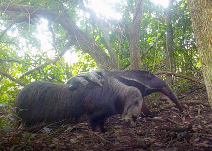 La semana pasada, las cámaras-trampa colocadas en el Parque Iberá registraron a la madre con sus dos crías en el lomo, un espectáculo muy singular. En Argentina no hay ningún registro previo de este tipo, y en vida silvestre solo conocemos un registro de osos hormigueros mellizos que ocurrió en el Pantanal Sul en el Mato Grosso, en Brasil, donde trabaja la organización Onçafari, informó la fundación Rewilding.
