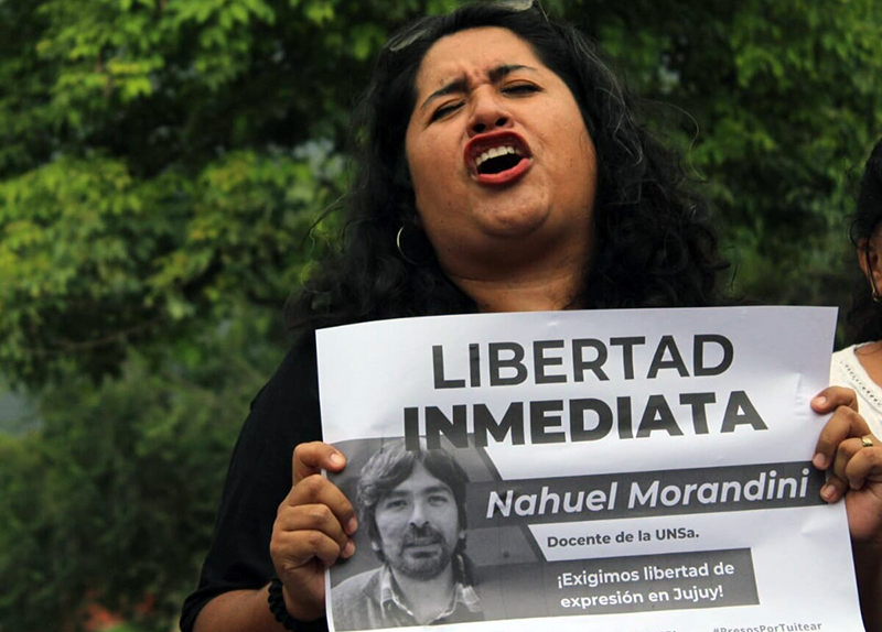 Morandini junto a Roque Villegas, ambos usuarios de la red social X, permanecen privados de su libertad desde el 4 de enero por twittear contra el exgobernador Gerardo Morales y su esposa. A través de un comunicado, el Equipo Nacional de Pastoral Aborigen resalta la personalidad de quien tiene, ''un especial compromiso con la defensa de los derechos de los Pueblos Originarios y del agua en el Chaco Salteño, cuestión, esta última, que afecta directamente a las Comunidades Indígenas''.