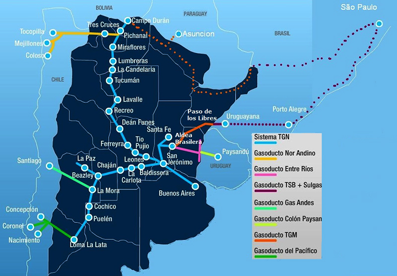 Este mega gasoducto, a cargo de la Transportadora del MERCOSUR (TGM), se alimenta por medio de la Transportadora del Norte (TGN). Diseñado para partir desde Loma de la Lata, Neuquén, y llegar a Porto Alegre, y desde allí a San Pablo, debía retornar a Argentina, alimentando también a Paraguay y cerrando un anillo de más de 5.000 kilómetros en Salta. Sin embargo, este ambicioso proyecto quedó trunco en Uruguayana, Brasil, debido a múltiples complicaciones.