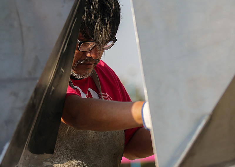 Sobre la diferencia técnica entre el acero que brilla y el acero opaco negro, Percy explica: “La aleación del acero brillante necesita cromo y níquel, lo que lo hace inoxidable y mantiene su brillo. En el caso del acero negro, hay que protegerlo u oxidarlo. Algunos lo oxidan, otros lo pintamos, pero todos queremos hacer algo que podamos mostrar”.
