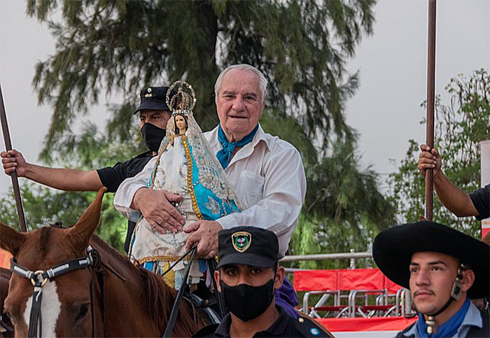 Desde 2005, Alfredo Ellero recorría 50 metros a caballo desde el acceso del anfiteatro hasta el escenario “Osvaldo Sosa Cordero” para que la “patrona del chamamé” presidiera y bendijera cada una de las diez noches de la fiesta. Sin embargo, el año pasado, debido a su enfermedad, tuvo que acompañar a la imagen de la Virgen desde el escenario.