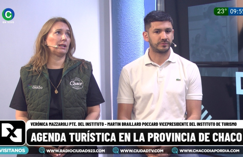 La presidente del Instituto de Turismo del Chaco, Verónica Mazzaroli, y el vicepresidente Martín Brillard Pocard, visitaron los estudios de CIUDAD TV para hablar de los últimos preparativos de la Pesca del Dorado que tendrá lugar este fin de semana en la Isla del Cerrito.