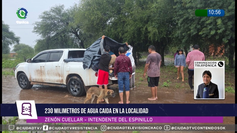 Las intensas lluvias registradas en la jornada del lunes en El Espinillo generaron anegamientos en gran parte de la localidad y dejaron a cientos de familias con sus viviendas bajo agua. El intendente Zenón Cuellar señaló que en pocas horas se registraron precipitaciones que agravaron la situación en barrios y zonas rurales.