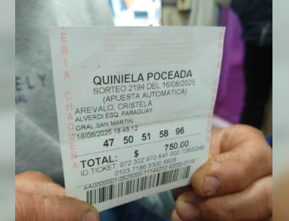El ganador es un hombre de 47 años que se desempeña en forma autónoma como herrero y soldador. “Solemos elegir los números en familia. Vamos variando, pero esta vez nos decidimos por la automática”, reveló el hombre al momento de presentarse en las oficinas de Lotería Chaqueña.