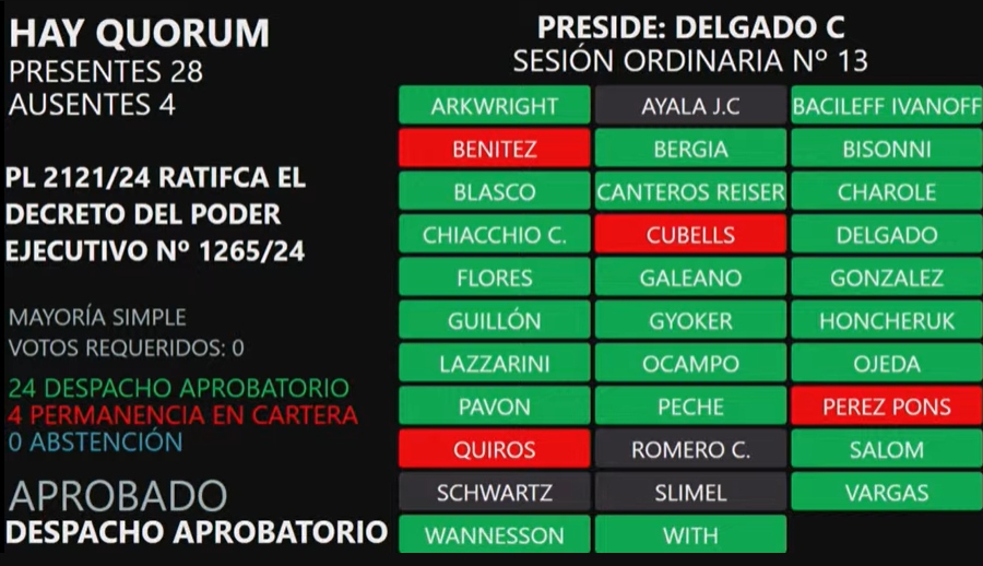 Con 29 diputados presentes, la ley se sancionó con 25 votos afirmativos por sobre 4 que se inclinaron por su permeancia en cartera.