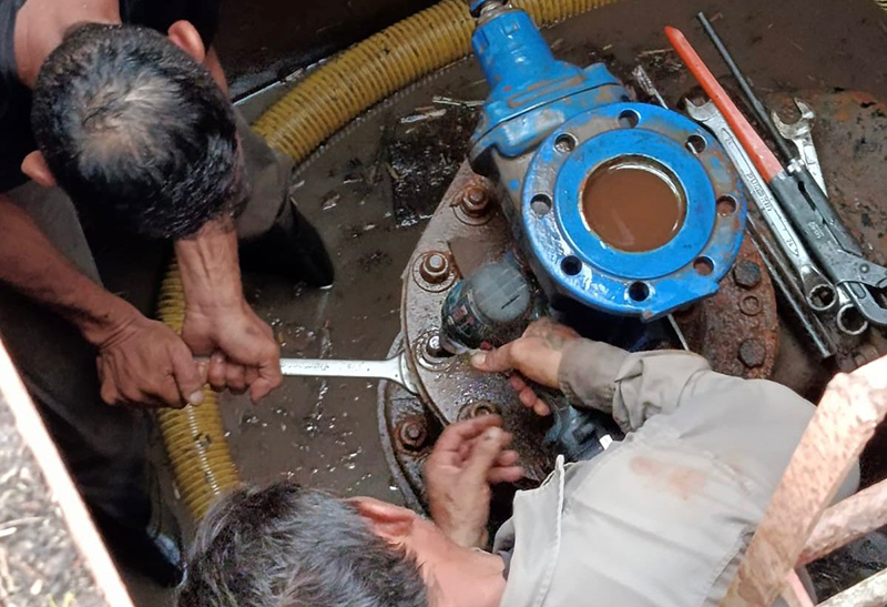 Se realizaron trabajos de reparación sobre una conexión del Primer Acueducto, específicamente en la válvula de derivación que abastece a la localidad de Puerto Bastiani.