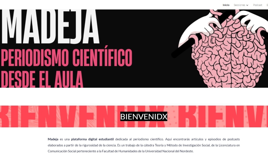 La plataforma estudiantil busca acercar la ciencia al público. Encontrarás artículos y podcasts sobre distintos temas (redes sociales, inteligencias artificiales, política y sociedad) elaborados a partir de investigaciones científicas. Elaborado y coordinado por estudiantes y equipo docente de la cátedra Teoría y Método de la Investigación Social, de la Licenciatura en Comunicación Social de la UNNE.