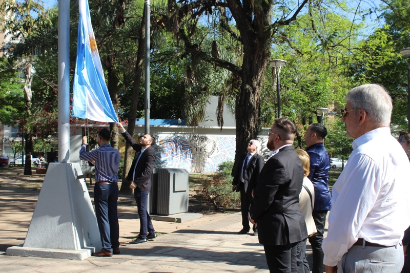La Plaza 12 de Octubre fue escenario para el acto por el Día de la Diversidad Cultural. Con una emotiva ceremonia, autoridades municipales conmemoraron esta fecha tan cara a los sentimientos americanos.