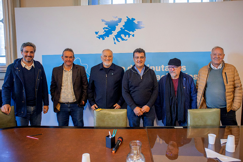 José María Lojo, presidente del Consejo Porturario acompañado por Gastón Harispe, Oscar Verón y Néstor Piccone, todos integrantes de la Comisión Asesora por el Canal Magdalena, se reunieron en el Congreso de la Nación con los diputados Santiago Cafiero (PBA) y Gustavo González (Santa Cruz) de la Comisión de intereses marítimos, fluviales, pesqueros y portuarios.