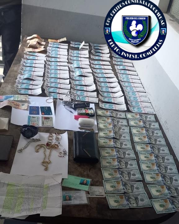 Cerca de las 17:30 de este lunes, el personal policial, junto al de la División Investigación Criminal de Corrientes, atraparon a la sospechosa en la intersección de calles Buenos Aires y Quintana, Corrientes. Allí mismo se incautó un total de 705 mil pesos y dos mil dólares. También secuestraron anillos, pulseras, cadenas, argollas, relojes, anteojos, un celular, una llave, documentos y un termo Stanley rosado con un mate, bombilla y otros elementos.