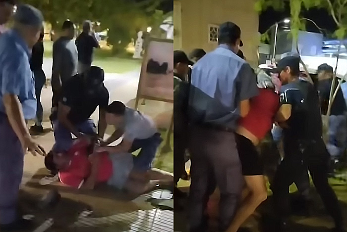 “Estábamos frente a la Catedral, en la vereda de la plaza cuando varios policías se acercaron a preguntarnos que hacíamos ahí. Entonces hubo un cruce de palabras con uno de los asistentes, que pasó a mayores cuando sin previo aviso se le abalanzaron varios uniformados para reducirlo luego de voltearlo violentamente al suelo y después llevarlo preso. El hombre no estaba armado, no es un delincuente y gritaba y suplicaba por favor que lo dejen, que era epiléptico; pero igual lo cargaron en la caja trasera de un patrullero y lo llevaron detenido”.