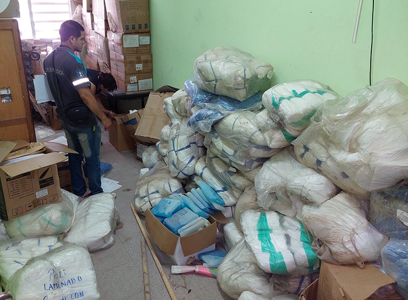 En el depósito, se habrían encontrado: 10 tubos de oxígenos (2 de ellos con etiqueta de nuevos), rollos de tejidos, 3 balanzas, equipamiento informático, dos cajas de placas radiográficas de 35 x 35 manual, valuada en casi 3 millones de pesos, 20 cajas por 100 pastillas, Larvicidas vencidas para la lucha contra el Dengue, camisolines, medicamentos, mamelucos, en cantidades incalculables, jeringas, sueros que se usan en terapia intensivas, guantes y agujas, entre otros elementos de suma necesidad.
