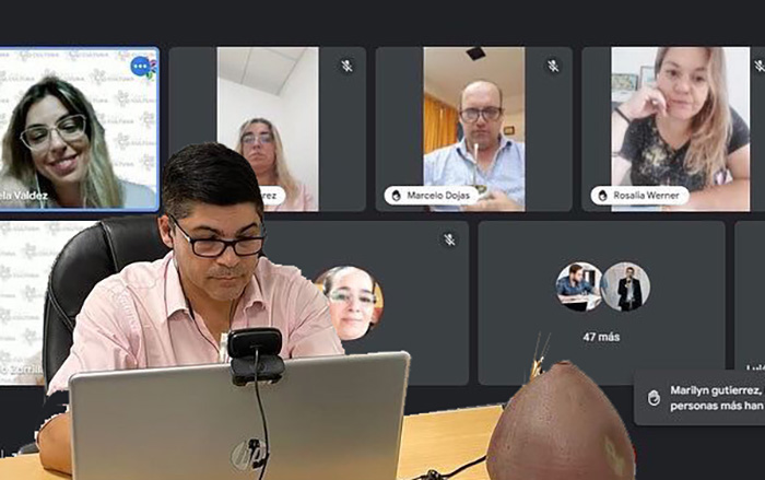 Zorrilla junto a la vicepresidente, Daniela Valdez, los vocales, Daniela Zacarías y Marcelo Dojas, y los equipos de Secretaría, Producción y Marketing Cultural expuso la situación en la que se encuentra la institución, programas e infraestructura.
