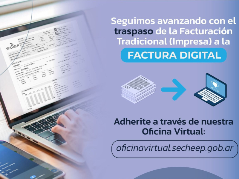 Desde Secheep informaron los pasos para adherirse a la Factura Digital a través de la Oficina Virtual: