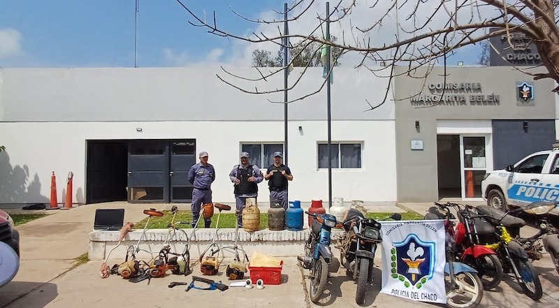 En el otro inmueble, ubicado en calle Eva Duarte, hallaron 3.245.310 pesos, 57.905 pesos guaraníes, billetes de moneda argentina fuera de circulación por la suma de 695.892 pesos, billete Italiano por la suma de 100 Lites Italianos, 121 dólares, 651 monedas brasileña fuera de circulación, un aire comprimido tipo rifle, un aire comprimido tipo pistola, 2 cartuchos calibre 22, cinco celulares, un binocular, cinco motocicletas, una camioneta Toyota Hilux, seis tubos de gas, cinco máquinas desmalezadoras y una computadora.