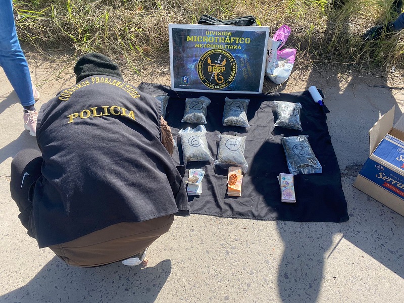 Este lunes, cerca de las 14 horas, en la avenida Mosconi a la altura 900, estimativamente, los efectivos de la División Microtráfico Metropolitana demoraron a dos hombres de 22 y 29 años quienes tenían una bolsa tipo alimento para perros con envoltorios más pequeños en su interior.