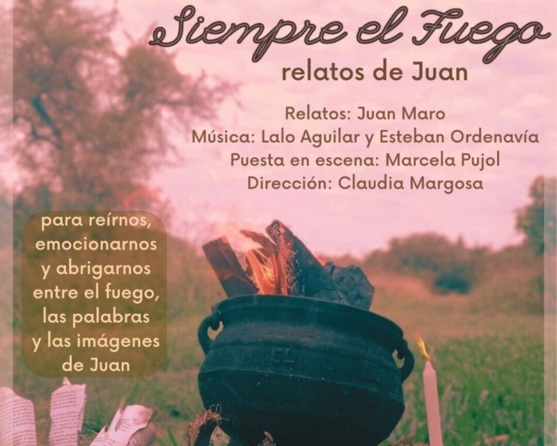 Siempre el fuego, cuenta con relatos de Juan Maro, la música: Lalo Aguilar y Esteban Ordenavía; puesta en escena: Marcela Pujol y Dirección: Claudia Margosa.