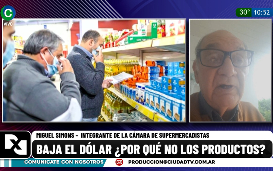 El vicepresidente de la Cámara de Supermercadistas del Chaco, Miguel Simons, dialogó con CIUDAD TV sobre los precios y la posibilidad de que puedan empezar a mermar. "Lo escuché al Presidente decir que el dólar bajó, que la inflación paró; pero yo creo que la inflación se paró porque no hay ventas, por la brutal recesión", apuntó.