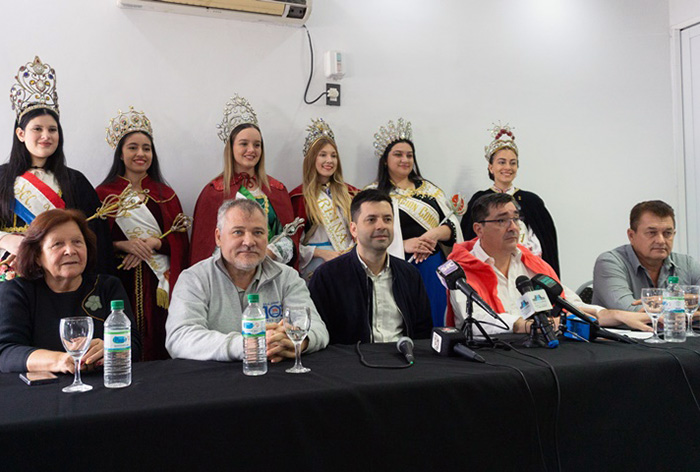 El intendente Bruno Cipolini, en conferencia de prensa, estuvo junto a autoridades de la Federación de Colectividades presidida por Roberto Bobenik, los secretarios de Relaciones Institucionales, Juan Fuentes Castillo; de Desarrollo Local, Oscar Dudik, y candidatas a reinas, donde manifestó una vez más su apoyo y respaldo a dicho evento.