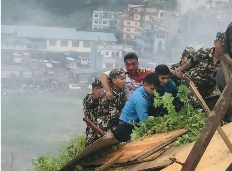 Videos publicados por la televisión local Kantipur TV muestran la aeronave completamente destrozada, con parte de su fuselaje calcinado, en las inmediaciones del aeropuerto, y rodeado por decenas de operarios de los equipos de rescate.