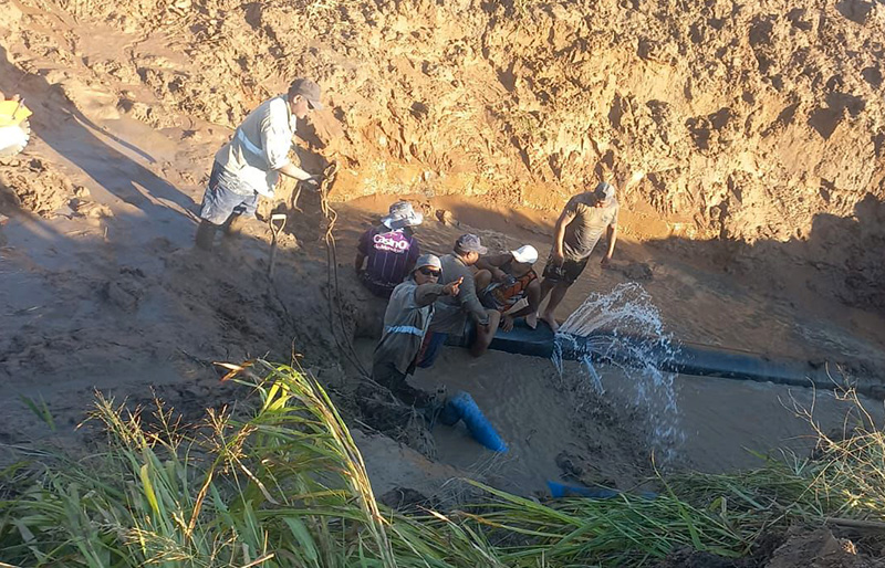 La intervención se realizó sobre una cañería de 500 milímetros de diámetro, ubicada a un kilómetro de la Planta Potabilizadora de El Colorado. Tras la finalización de las tareas, el servicio de agua potable comenzó a restablecerse de manera paulatina, con una recuperación progresiva de la presión y del caudal habitual.