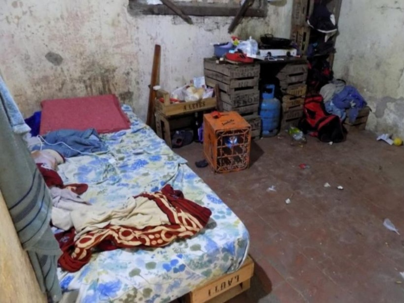 También contó que dormían en camas hechas con cajones de verduras, dentro de un galpón de chapa, con piso de tierra, que no tenían agua potable (tomaban de pozo) ni baño, y que debían introducirse en un monte para higienizarse o hacer sus necesidades. Los días de cobro, además, les descontaba la comida, que les fiaba un almacén lindero vinculado a un allegado al imputado.
