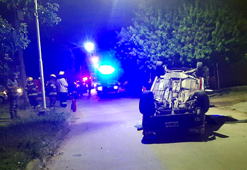 Alrededor de las 02:15 de la madrugada de este sábado, bomberos y efectivos policiales de la Comisaría Cuarta de Sáenz Peña, acudieron a la calle 21 bis entre 34 y 36 del barrio Yapeyú tras el aviso de vecinos al 911, donde constataron que un automóvil Fiat Uno rojo se encontraba volcado sobre la calzada con las ruedas hacia arriba.