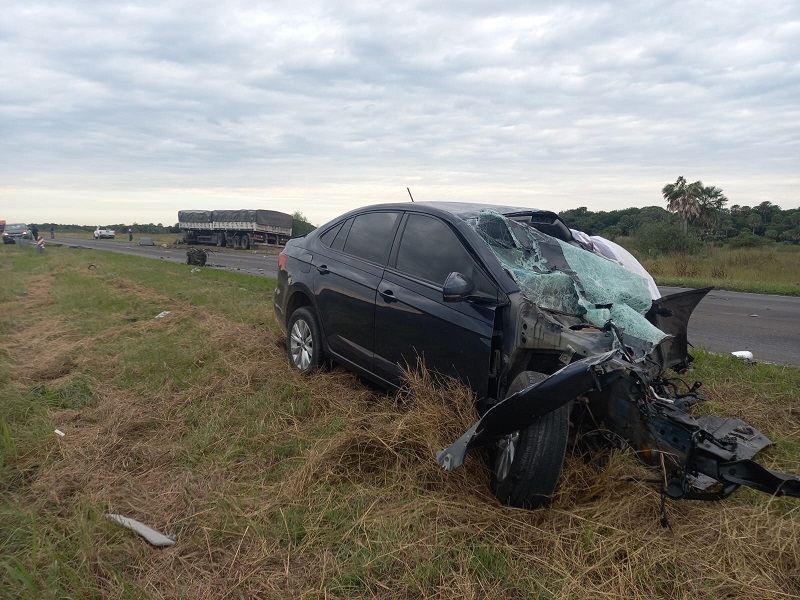 Cerca de las 15:40 horas de este martes, un llamado al 911 alertó al personal de la Comisaría local sobre un siniestro vial entre un automóvil marca Volkswagen modelo Virtus y un camión Mercedes Benz con semirremolque.