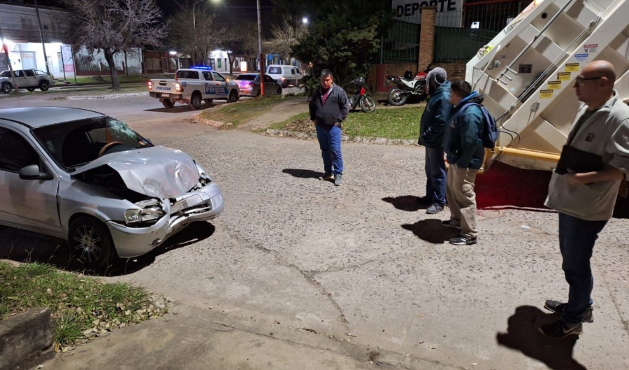 Este domingo, alrededor de las 23:30, un hombre a bordo de un Suzuki Fun gris colisionó con un camión recolector de residuos en la intersección de Av. Mac Lean y calle Salta. El conductor del automóvil se encontraba en aparente estado de ebriedad, con dificultades para caminar y hablar.