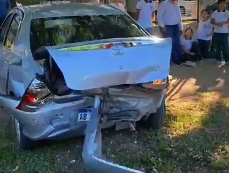 El impacto fue tan fuerte que un tercer vehículo, un Nissan Kicks, también resultó afectado, quedando cruzado al otro lado de la banquina.