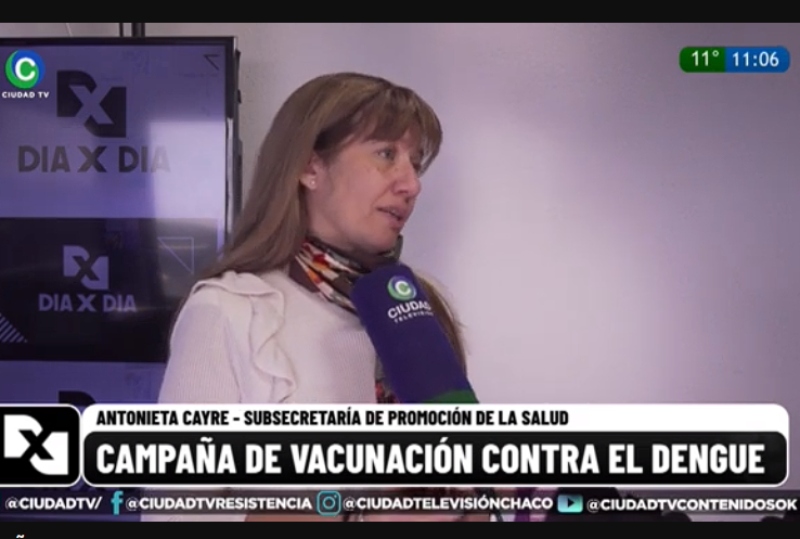 La subsecretaria de Promoción de la Salud, Antonieta Cayre, dialogó con el móvil de CIUDAD TV sobre la vacuna contra el dengue y aseguró que "es una estrategia más, pero no es la solución para los casos de brotes". Sí remarcó que esta inmunización puede prevenir la patología, principalmente los serotipos 1 y 2.