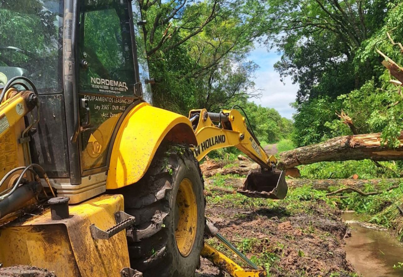 Se encuentran trabajando en la remoción de árboles, ramas y postes caídos, así como también en el despeje de accesos principales y caminos vecinales para reestablecer la circulación y facilitar el ingreso de los servicios esenciales.