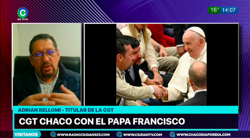 El secretario General de la Central de Trabajadores (CGT) Chaco, Adrián Bellomi, habló con CIUDAD TV tras su encuentro con Francisco en el Vaticano y destacó que “la experiencia fue más que satisfactoria” por el interés del sumo pontífice en las problemáticas de los trabajadores chaqueños.
