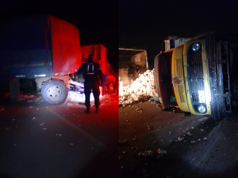 Los efectivos de la comisaría local tomaron conocimiento sobre el vuelco de un camión con acoplado transportando algodón a granel por ruta N° 13.
