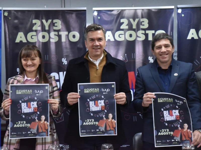 La 12° edición del Black Friday será el viernes 2 y sábado 3 de agosto, con promociones en comercios de todos los rubros, gastronomía, hotelería y turismo. Habrá cuotas sin intereses con tarjeta Tuya (Nuevo Banco del Chaco) y Visa y Mastercard (Banco Nación).